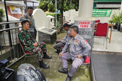 Matalensa- Surakarta, Serka Sarmin dan Serka Anjasmoro Babinsa Tipes Koramil 03/Serengan Kodim 0735/Surakarta, melaksanakan obrolan santai dengan Linmas Selaku Keamanan Kelurahan dan wilayah yang bera...