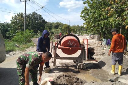 Matalensa- Boyolali. Babinsa Koramil 13/Nogosari Kodim 0724/Boyolali, Serka Wahyono, melakukan pemantauan langsung perkembangan pembangunan jembatan beton yang menghubungkan Kecamatan Nogosari dan Kec...