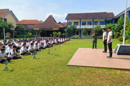 Matalensa- Surakarta – Babinsa Kelurahan Manahan Koramil 02/Banjarsari Kodim 0735/Surakarta Serma Saring dan Sertu Supriyadi memberikan pelatihan peraturan baris berbaris (PBB) di SMA Negeri 4 S...