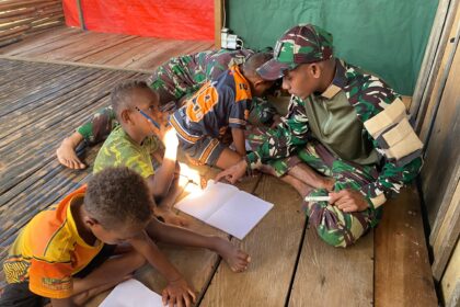 Matalensa- Denom, Pegunungan Bintang – Pos Denom Satgas Swasembada Yonif 751/Vira Jaya Sakti (VJS) menggelar kelas calistung (membaca, menulis, dan berhitung) bagi anak-anak perbatasan di pos se...