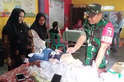 Matalensa || Blitar – Babinsa Kelurahan Tanggung, Posramil Kepanjenkidul Koramil 0808/01 Sukorejo, Koptu Slamet Rianto bersama para kader Posyandu melaksanakan kegiatan pendampingan percepatan p...