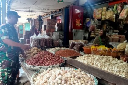 Matalensa- Sragen, Dalam rangka memastikan ketersediaan bahan kebutuhan pokok (sembako) tetap aman dan harga tetap stabil usai Hari Raya, Babinsa Koramil 02/Karangmalang Kodim 0725/Sragen Serma Eko Bu...