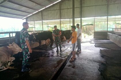 Matalensa || Sragen, Serka Andreas Babinsa Koramil-11/Jenar Kodim 0725/Sragen mengajak para peternak untuk berperan aktif dalam mencegah penyebaran Penyakit Mulut dan Kuku (PMK) pada hewan ternak. “Ji...