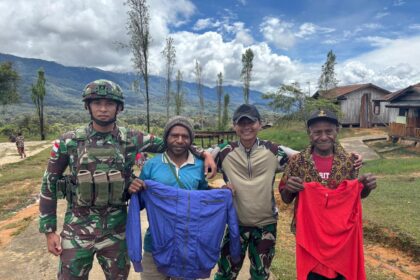 Matalensa- Seramkatop, Distrik Serambakon, Pegunungan Bintang — Pos Serambakon Yonif 751/Vira Jaya Sakti (VJS) Satgas Swasembada melaksanakan kegiatan pembinaan teritorial berupa pembagian baju layak ...