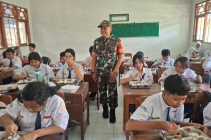 Matalensa- Surakarta – Babinsa Danukusuman Koramil 3/Serengan Kodim 0735/Surakarta Serda Tito bantu Pendistribusian Makan Bergizi Gratis (MBG) ke Sekolah di Wilayah Kelurahan Danukusuman Kecamat...