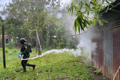 Matalensa- Serukubin, Distrik Iwur, Pegunungan Bintang – Pos Iwur Satgas Pamtas RI–PNG Yonif 751/Vira Jaya Sakti (VJS) melaksanakan pengasapan (fogging) fokus di Kampung Serukubin untuk mencegah...