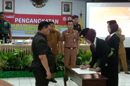 Matalensa || Kotawaringin Timur – Komandan Kodim 1015/Sampit Letkol Inf Dwi Candra Setyawan yang di wakili Pasi Ops Kodim 1015/Sampit Kapten Inf Syahidin, menghadiri prosesi Pengangkatan Pelaksa...