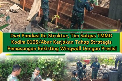 Matalensa || Aceh Barat – Solid dan terukur, Tim Satgas TMMD Reguler ke-127 Kodim 0105/Abar bersama masyarakat terus memantapkan tahapan pemasangan papan mall wingwall di Desa Pasi Aceh, Kecamatan Woy...