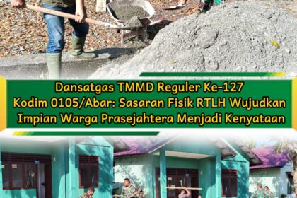 Matalensa || Aceh Barat – Dari kepedulian menjadi aksi nyata, Dansatgas TMMD Reguler ke-127 Kodim 0105/Abar Letkol Inf S. Kembaren,S.E.,M.I.P.,CFrA., merealisasikan program Rumah Tidak Layak Huni (RTL...