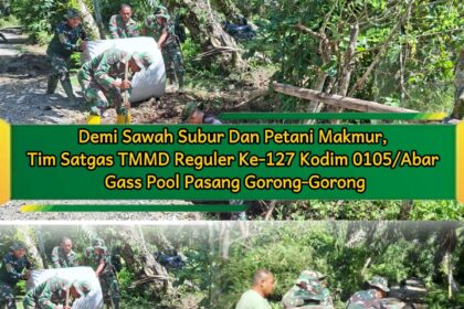 Matalensa || Aceh Barat – Demi terwujudnya sawah yang subur dan petani yang makmur, Tim Satgas TMMD Reguler ke-127 Kodim 0105/Abar bersama masyarakat “gass pool” melaksanakan gotong royong pemas...