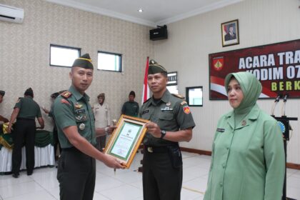 Matalensa—Blitar – Usai pelaksanaan tradisi korps penerimaan pejabat baru, Komandan Kodim 0808/Blitar Letkol Inf. Virlani Arudyawan memberikan Jam Komandan kepada seluruh prajurit dan PNS ...