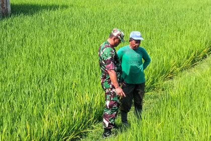 Matalensa–Aceh Utara – Babinsa Koramil 06/Samudera Serda Rahmat melaksanakan kegiatan pendampingan ketahanan pangan dengan meninjau perkembangan pertumbuhan tanaman padi di Desa Tanjung Re...