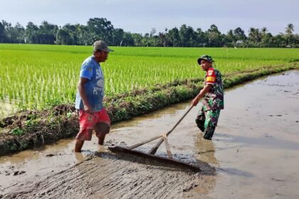 Matalensa- Aceh Utara – Semangat pantang menyerah ditunjukkan prajurit teritorial Kodim 0103/Aceh Utara dalam mendukung pemulihan sektor pertanian pascabanjir. Babinsa Koramil 17/SPK, Sertu Digd...