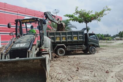 Matalensa- Aceh Utara – Koramil 06/Samudera Kodim 0103/Aceh Utara mengawal langsung kegiatan pemindahan timbunan tanah ke dalam pondasi Masjid Besar Sultan Malikussaleh yang baru, berlokasi di D...