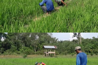 Matalensa || Aceh Barat – Sertu Iwan Babinsa Koramil 11/WT bersama para petani melaksanakan kegiatan gotong royong membersihkan lahan sawah dari rumput liar yang mengganggu pertumbuhan tanaman p...