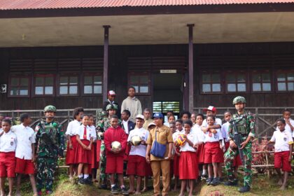 Matalensa b|| Kukding, Pegunungan Bintang — Pos Okpol Satgas Pamtas RI–PNG Yonif 751/Vira Jaya Sakti (VJS) melaksanakan kegiatan anjangsana ke SD YPPK Kukding sebagai wujud kepedulian TNI terhadap gen...