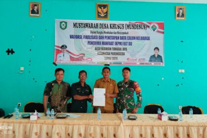 Matalensa ||| Kotawaringin Timur – Babinsa Koramil 1015-07/Parenggean Pratu Ponidi menghadiri Musyawarah Desa (Musdes) penetapan Keluarga Penerima Manfaat (KPM) dan Bantuan Lansung Tunai Dana De...