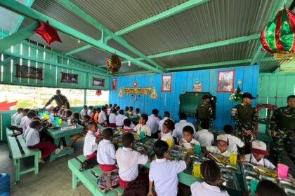 Matalensa- Oksibil, Pegunungan Bintang- Pos Komando Taktis (Kotis) Satgas Pamtas RI–PNG Yonif 751/Vira Jaya Sakti (VJS) melaksanakan kegiatan sosial dengan memberikan makan kepada anak-anak yang baru ...