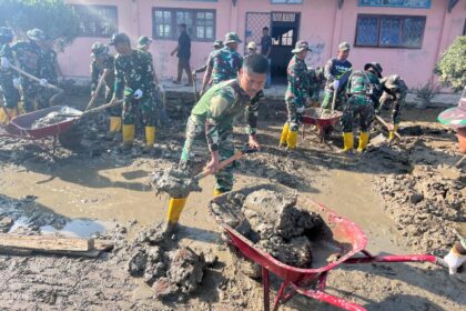 Matalensa- Aceh Utara – Personel BKO Yon Zipur 17 bersama anggota Koramil 06/Samudera melaksanakan kegiatan karya bakti pembersihan di lingkungan TK Nahrisya, Kecamatan Samudera, Kabupaten Aceh ...