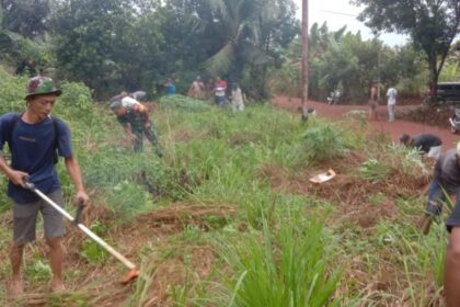 Matalensa || Kotawaringin Timur – Babinsa Koramil 1015-07/parenggean Kopda Chandra bersama warga melaksanakan gotong royong membersihkan semak belukar dan membersihkan parit di Desa Jati Waringi...