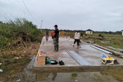 Matalensa- Lhokseumawe – Personel Koramil 01/Muara Satu jajaran Kodim 0103/Aceh Utara melaksanakan pendampingan intensif dalam proyek pembangunan Hunian Sementara (Huntara) bantuan dari Badan Na...