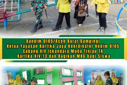 Matalensa || Aceh Barat – Dalam rangka mendukung pendidikan anak usia dini sekaligus menunjukkan kepedulian terhadap generasi penerus bangsa, Komandan Kodim 0105/Aceh Barat, Letnan Kolonel Inf S Kemba...