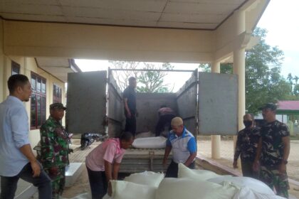 Matalensa- Aceh Utara – Koramil 10/Tanah Luas jajaran Kodim 0103/Aceh Utara mendampingi kegiatan pendistribusian bantuan beras dari Bupati Aceh Utara bersama Dinas Sosial Aceh Utara kepada masya...