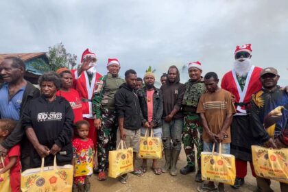 Matalensa- Oksibil, Pegunungan Bintang Dalam rangka memperingati Hari Raya Natal, Satgas Yonif 751/Vira Jaya Sakti (VJS) melaksanakan kegiatan sosial dengan membagikan bingkisan Natal kepada masyaraka...