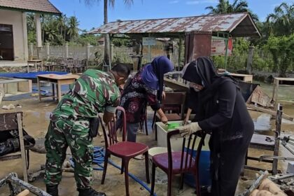 Matalensa- Aceh Utara – Personel Koramil 03/Dwt jajaran Kodim 0103/Aceh Utara melaksanakan aksi tanggap darurat berupa pembersihan lingkungan sekolah di MAN Negeri 3 Aceh Utara, Kecamatan Dewant...