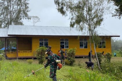 Matalensa- Bulangkop, Pegunungan Bintang — Pos Bulangkop Satgas Pamtas RI–PNG Yonif 751/Vira Jaya Sakti (VJS) bersama masyarakat Kampung Bulangkop melaksanakan karya bakti pembersihan gereja dalam ran...