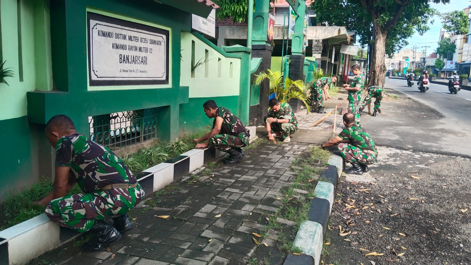 Matalensa- Surakarta – Dalam rangka menciptakan suasana perkantoran yang indah dan nyaman serta asri, Anggota Koramil 02/Banjarsari Kodim 0735/Surakarta dipimpin langsung oleh Danramil Kapten Inf Mulyono melaksanakan pembersihan dan perawatan Pangkalan koramil 02/Banjarsari , di Jln.Ahmad Yani No 273 Kelurahan Manahan Kecamatan Banjarsari, Senin (13/04/2026).