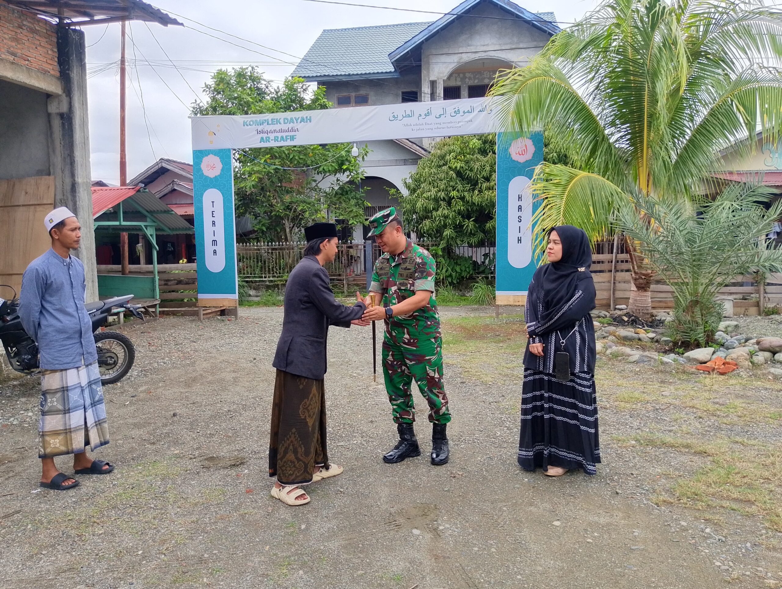 Kedatangan rombongan Dandim disambut langsung oleh Pimpinan Dayah Abi Rizki Rahmatullah beserta para Tendik (tenaga didik).