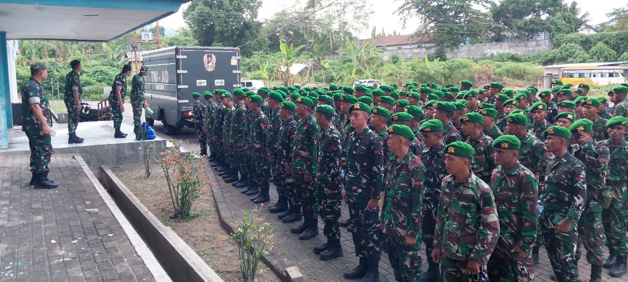 Matalensa- BITUNG – Komandan Kodim 1310/Bitung Letkol Inf Dewa Made DJ, sambut prajurit Yonif TP 916/SDY Kodam XIII/Merdeka bertempat di lokasi Marshalling Area (MA), Rusunawa Tangkoko, Kel. Manembo Nembo Tengah Kec. Matuari Kota Bitung, Minggu (08/03/2026).