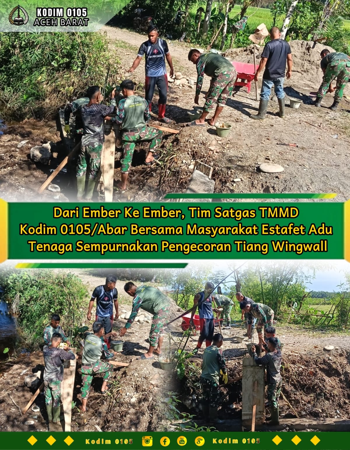Matalensa || Aceh Barat – Bahu membahu dalam irama, gotong royong mengalir tanpa henti. Personel Satgas TMMD Reguler ke-127 Kodim 0105/Abar bersama masyarakat melaksanakan pengecoran tiang wingwall secara estafet demi menghadirkan jalan yang kokoh bagi warga Desa Pasi Aceh, Kecamatan Woyla, Senin (23/2/2026).
