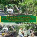 Memasuki fase krusial pembangunan, Personel Satgas TMMD bersama masyarakat setempat bahu-membahu mempercepat pemasangan bekisting wingwall. Semangat persatuan dan kesatuan menjadi energi utama dalam setiap tahapan pekerjaan, mulai dari merakit papan mall hingga menegakkannya secara presisi di titik sasaran.