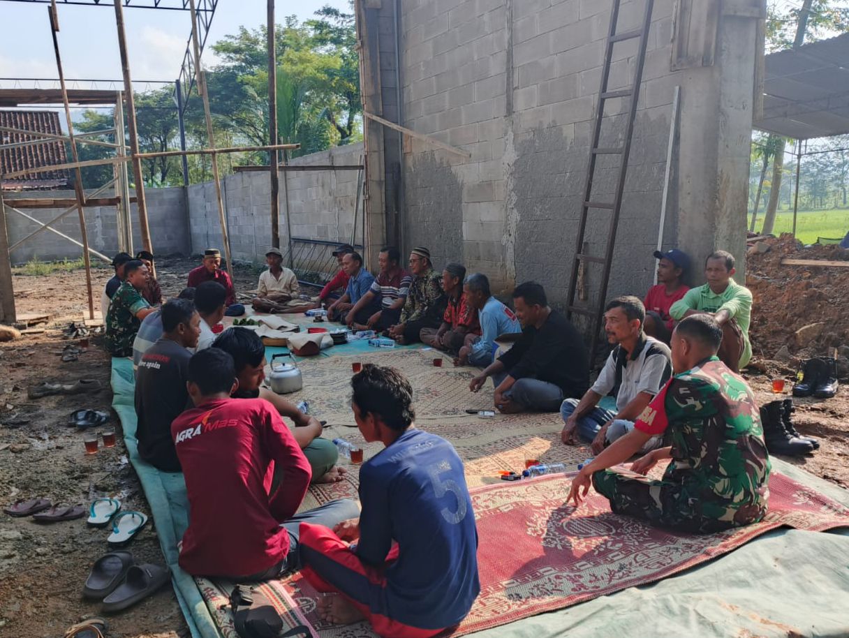 Usai doa bersama dan syukuran kegiatan dilanjutkan dengan pengerjaan gedung yang dilakukan secara bergotong royong baik oleh perangkat desa, warga termasuk Babinsa.