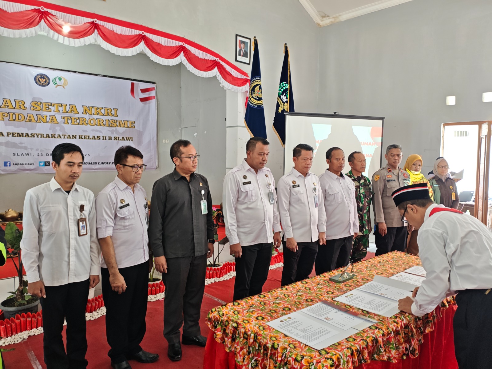Kegiatan tersebut dilaksanakan berdasarkan Surat Direktur Pembinaan Narapidana dan Anak Binaan Kementerian Imigrasi dan Pemasyarakatan Nomor PAS.4-PK.05.01-1419 tanggal 12 Desember 2025, tentang persetujuan pelaksanaan ikrar setia NKRI serentak bagi napiter dari Lapas Brebes dan Lapas Slawi.