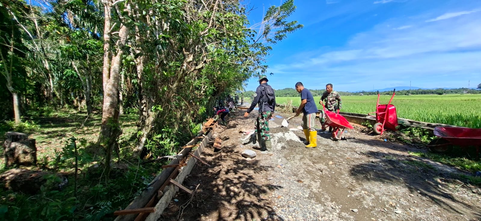 Matalensa || Aceh Barat – Semangat pantang surut terus ditunjukkan oleh Personel Satgas TMMD Reguler ke-127 Kodim 0105/Abar bersama masyarakat dalam mengerjakan sasaran fisik pembangunan Talut Penahan Timbunan (TPT) jalan di Desa Pasi Aceh, Kecamatan Woyla, Rabu (4/3/2026)