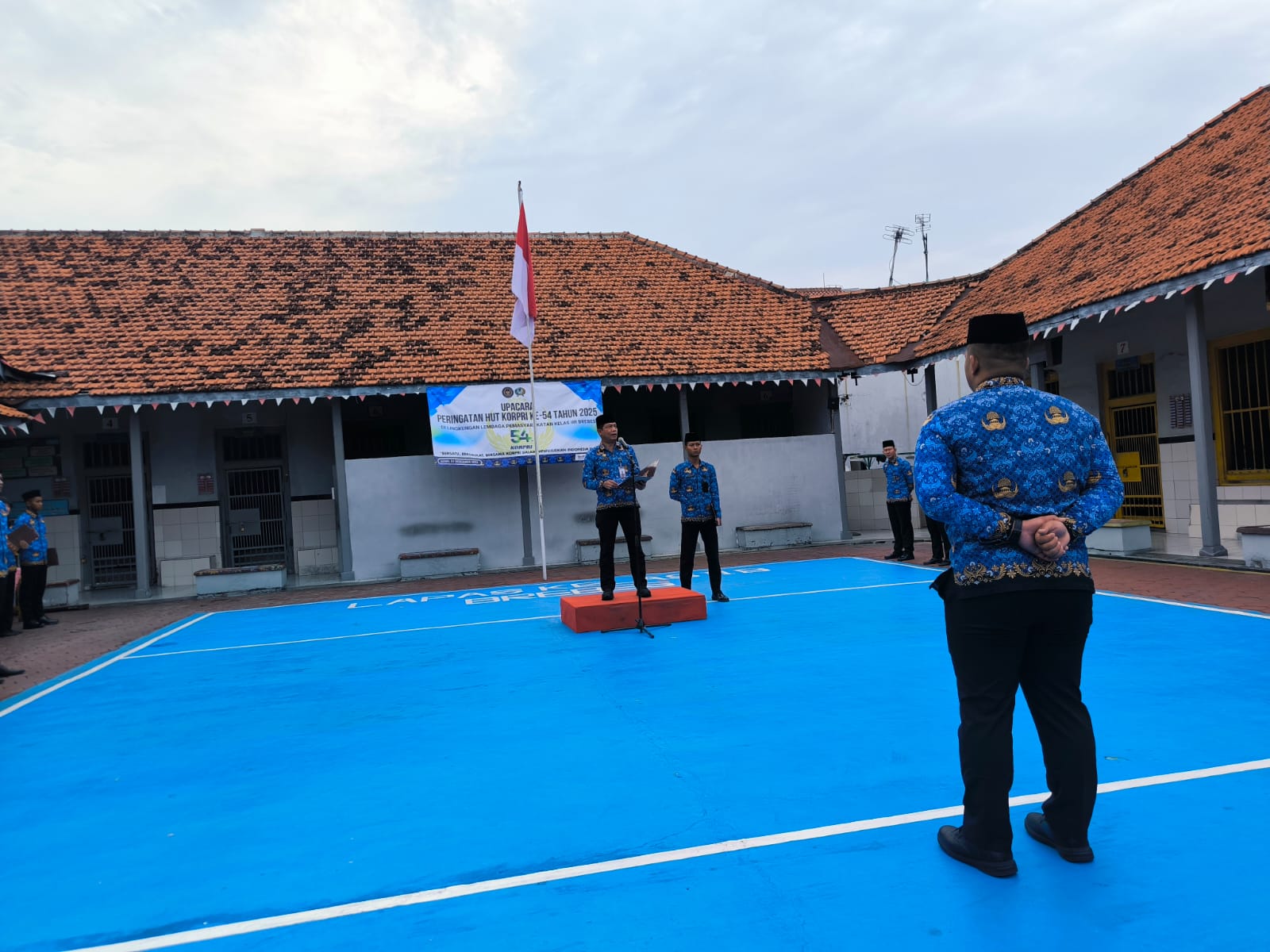 Matalensa || Brebes – Lembaga Pemasyarakatan (Lapas) Kelas IIB Brebes melaksanakan Upacara Peringatan Hari Ulang Tahun (HUT) ke-54 Korps Pegawai Republik Indonesia (KORPRI) pada Senin (01/12), bertempat di Lapangan Upacara Blok Hunian Lapas Brebes. Upacara berlangsung khidmat, tertib, dan penuh semangat kebangsaan, dengan diikuti oleh seluruh jajaran pegawai, peserta magang, dan seluruh Warga Binaan Pemasyarakatan.