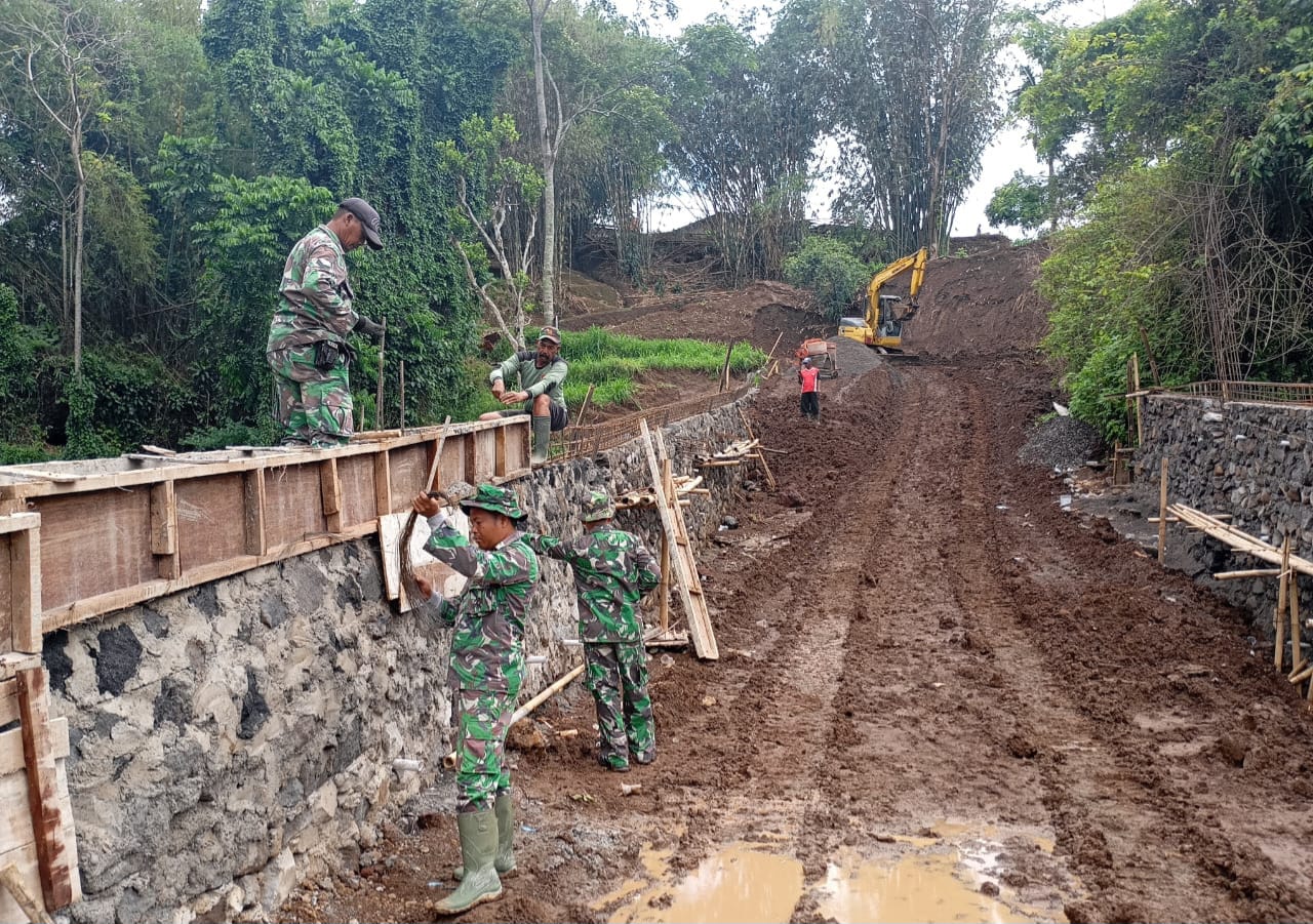 Matalensa- Boyolali – Cuaca cerah di Desa Candi, Kecamatan Ampel, Kabupaten Boyolali, menjadi semangat tersendiri bagi anggota Satuan Tugas (Satgas) TNI Manunggal Membangun Desa (TMMD) Sengkuyung Tahap IV Kodim 0724/Boyolali. Sejak pagi, prajurit TNI bersama warga setempat tampak bahu-membahu mempercepat pembangunan talud di sepanjang jalan desa, Minggu (26/10/25).