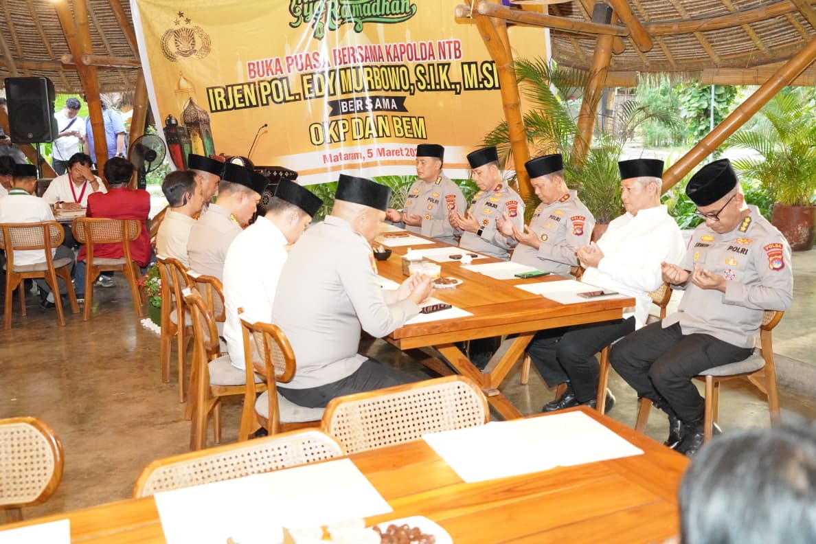 Matalensa- Mataram— Kapolda NTB Irjen Pol. Edy Murbowo, S.I.K., M.Si., Kamis (5/3/2026) malam, menghadiri buka puasa bersama organisasi kepemudaan NTB dan Badan Eksekutif Mahasiswa (BEM). Kegiatan berlangsung di Rumah Makan Dapoer Sasak mulai pukul 18.00 Wita hingga 19.20 Wita.