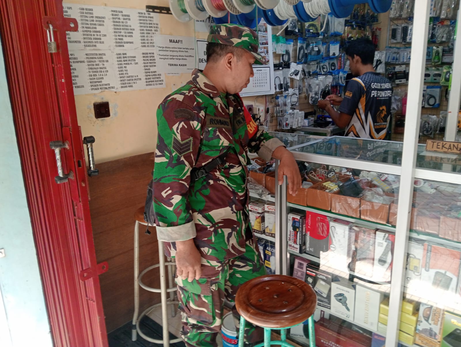 Matalensa- Surakarta, Dalam rangka melaksanakan Pembinaan Teritorial (Binter) di wilayah binaan, Babinsa Jayengan Koramil 03/Serengan Kodim 0735/Surakarta Serka Rohmad datangi dan memberi motivasi Bapak Giyanto selaku pelaku UMKM yang keseharian berjualan alat-alat elektronik yang berada di Jl. Kalilaranagn Jayengan Serengan Kota Surakarta, (27/10/2025)