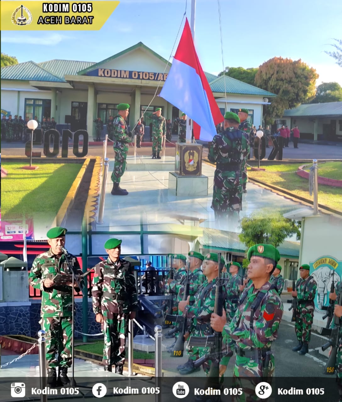 Matalensa || Aceh Barat – Dandim 0105/Abar Letkol Inf S Kembaren,S.E.,M.I.P.,CFrA., diwakili Kasdi Mayor Cke Teguh Widodo memimpin Upacara Bendera Merah Putih rutin yang diikuti oleh para Perwira Staf, Danramil/Danposramil dan seluruh Prajurit serta PNS bertempat di Lapangan Apel Makodim setempat berlokasi di Jalan Imam Bonjol Desa Drien Rampak Kecamatan Johan Pahlawan, Senin (22/12/2025)