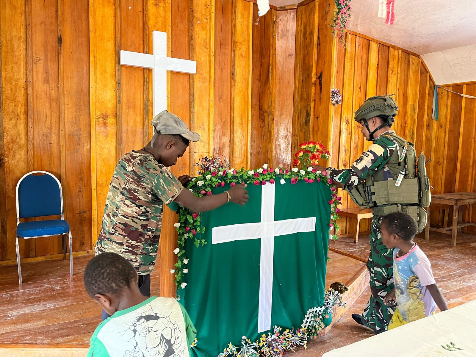 Dengan adanya Personil Pos Malagai ikut karya bakti para warga senang dan mengucapkan terimakasih. “Terimakasih Dansatgas 511, anak-anak Pos su membantu kasih bersih Gereja Pinime