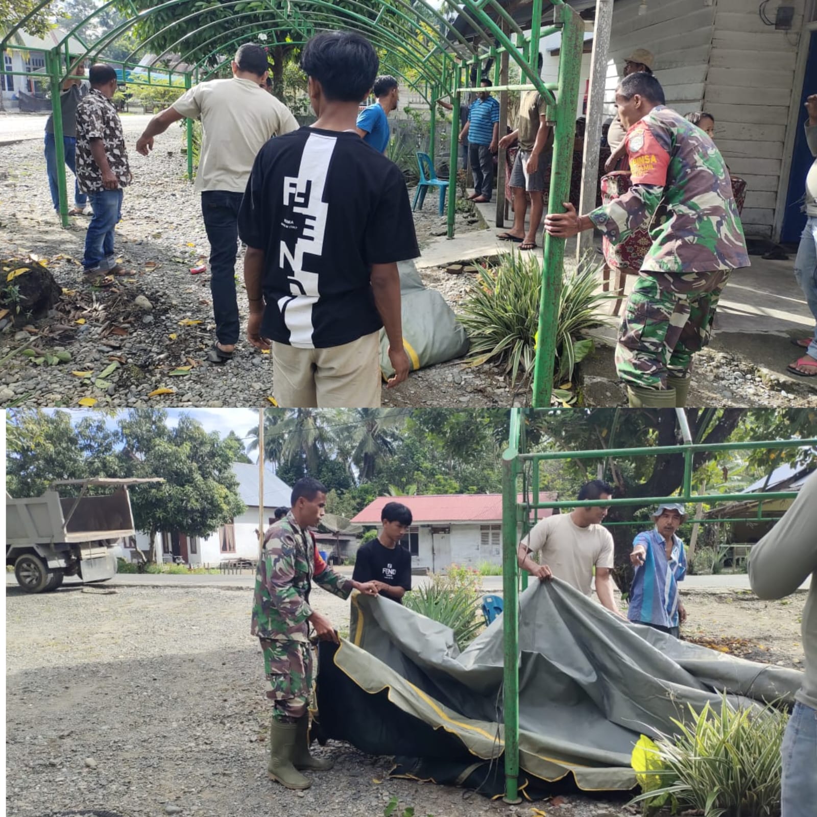 Matalensa || Pante Ceureumen – Babinsa Posramil 05/Pante Ceureumen kodim 0105/Aceh Barat, Sertu Modini bersama masyarakat melaksanakan kegiatan gotong royong dalam rangka mendirikan teratai sebagai persiapan acara hajatan warga. Kegiatan ini berlangsung dengan penuh semangat kebersamaan, di mana Babinsa turut langsung membantu proses pembangunan mulai dari penyiapan bahan, pemasangan rangka, hingga penataan lokasi agar siap digunakan, di Desa Meunuang kinco kec Pante Ceureumen kab Aceh Barat, Rabu (22/4/2026).