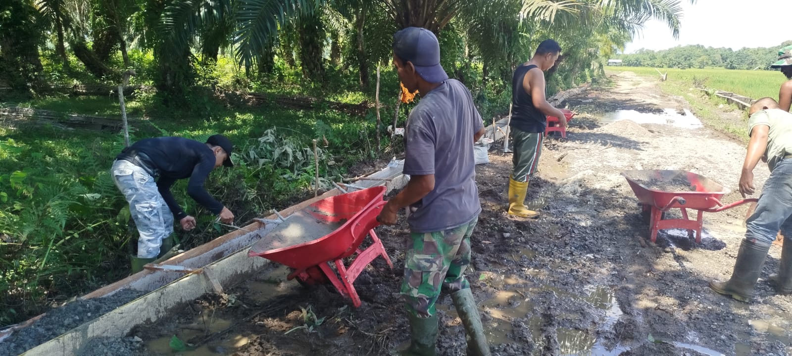 Semangat gotong royong begitu terasa di titik lokasi pekerjaan. Layaknya pantauan di lapangan hari ini, Pajurit TNI dan masyarakat menyatu tanpa sekat, bekerja sesuai tugas dan tanggung jawab masing-masing (job description), namun tetap dalam satu tekad yang sama: menuntaskan sasaran fisik tepat waktu dan berkualitas.