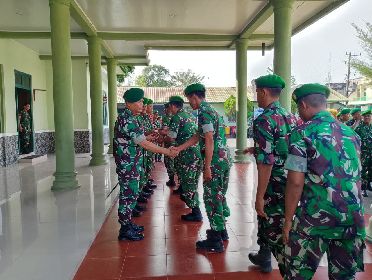 Sebelum pelaksanaan apel, Dandim terlebih dahulu melakukan pengecekan secara langsung guna memastikan kehadiran, kelengkapan, serta kesiapan para Prajurit. Hal ini dilakukan sebagai bentuk pengawasan sekaligus penegasan kedisiplinan setelah kembali dinas cuti Lebaran.
