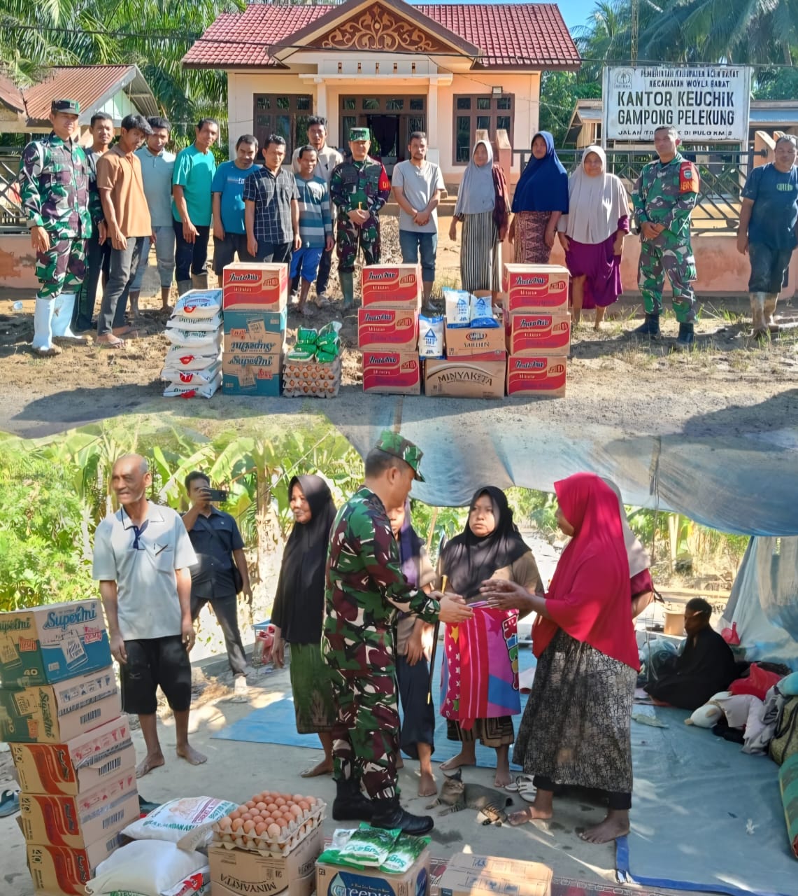 Terkait kunjungan dan bantuan Sembako yang diberikan oleh Dandim tak pelak disambut antusias oleh warga yang seketika itu pula membangkitkan semangat dan mengurangi beban psikis warga. Adapun Bakti Sosial pendistribusian Sembako diserahkan kepada warga Desa Alue Perman dan Desa Pelekung Kecamatan Woyla Barat.