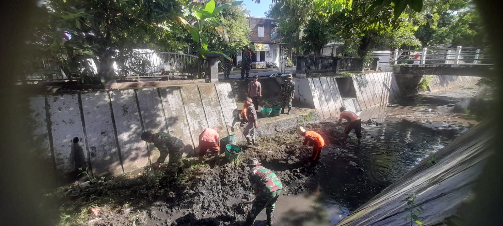 Kerja bakti bersama Pembersihan Kali Pepe di Kampung Gondang RT01 RW 01 Kel. Manahan, Kec. Banjarsari Kota Surakarta dipimpin langsung oleh Danramil 02/Banjarsari Kapten Inf Mulyono bersama dengan Anggota Koramil 02/bjs, warga masyarakat dan Tim Saberling Kelurahan Manahan.