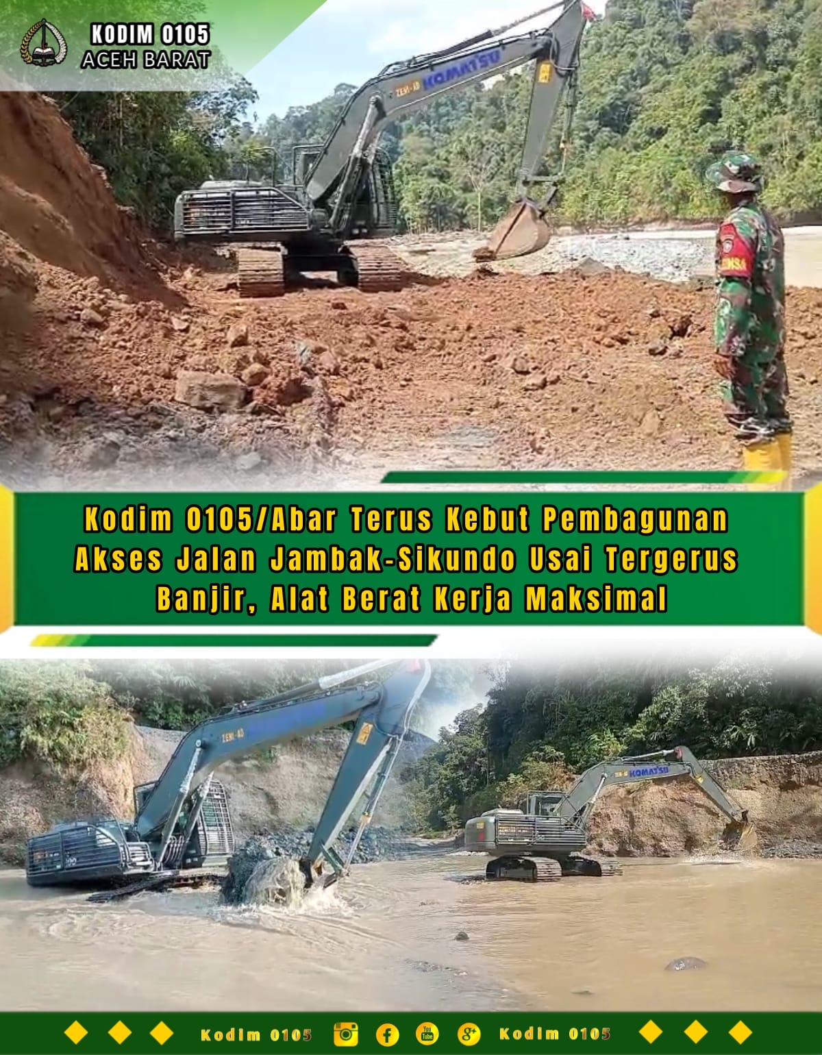 Pengerahan Personel dan penerjunan alat berat ini merupakan respons cepat Dandim 0105/Abar Letkol Inf S Kembaren,S.E.,M.I.P.,CFrA., sebagai upaya tindakan tanggap darurat bencana alam yang bukan hanya mengganggu aktifitas sosial masyarakat, namun juga menghambat perputaran roda perekonomian dan mobilitas sektor pertanian.